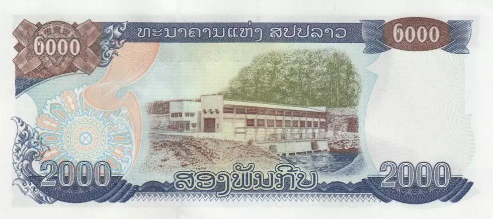 Home > World Banknotes > Asian Banknotes > Laos > Lao 2000 Kip, Kaysone Phomvihane - Hydroelectric factory - 1997 - Serial AK