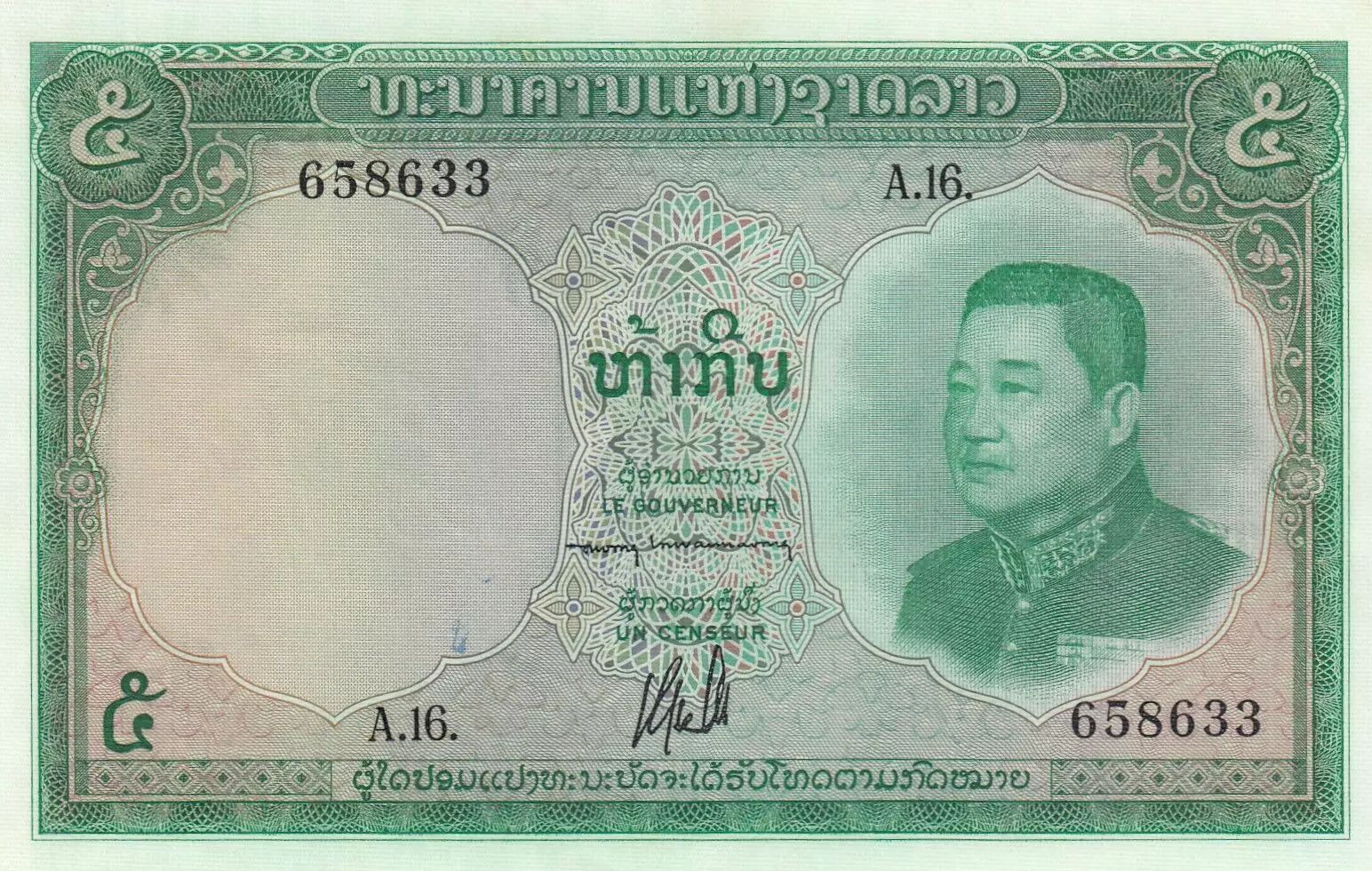 Home > > Lao 5 Kip - Roi Sisavang Vong - 1962 - Series A.16