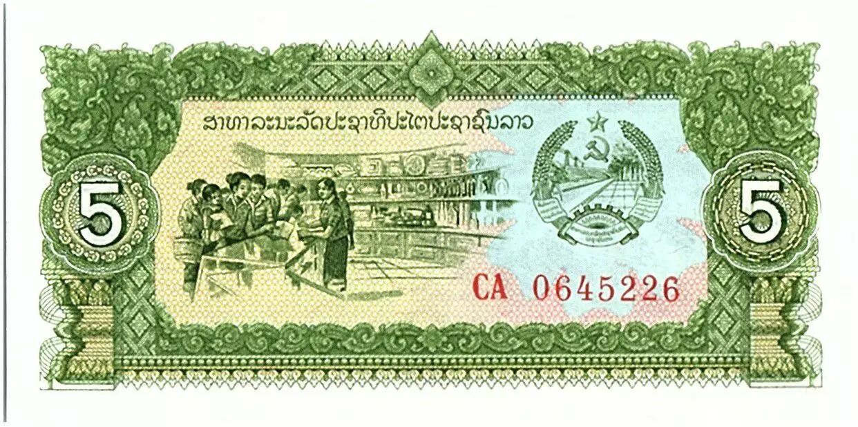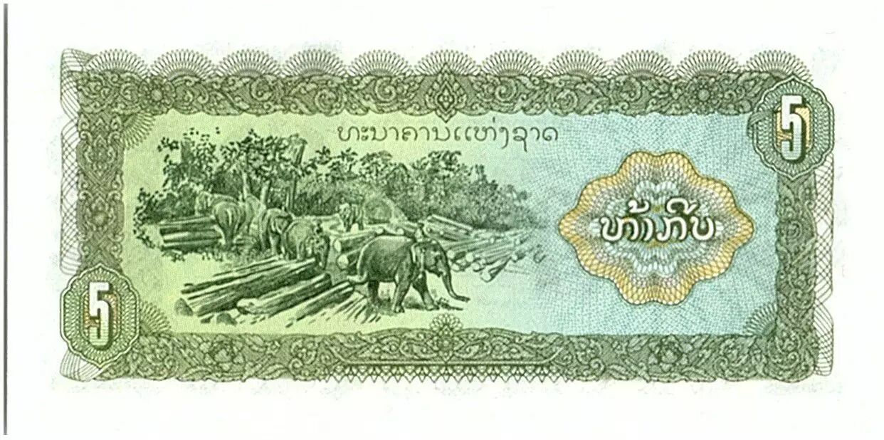 Banknote Lao 5 Kip, Shop, Logging elephants, Forestry - P.26 r