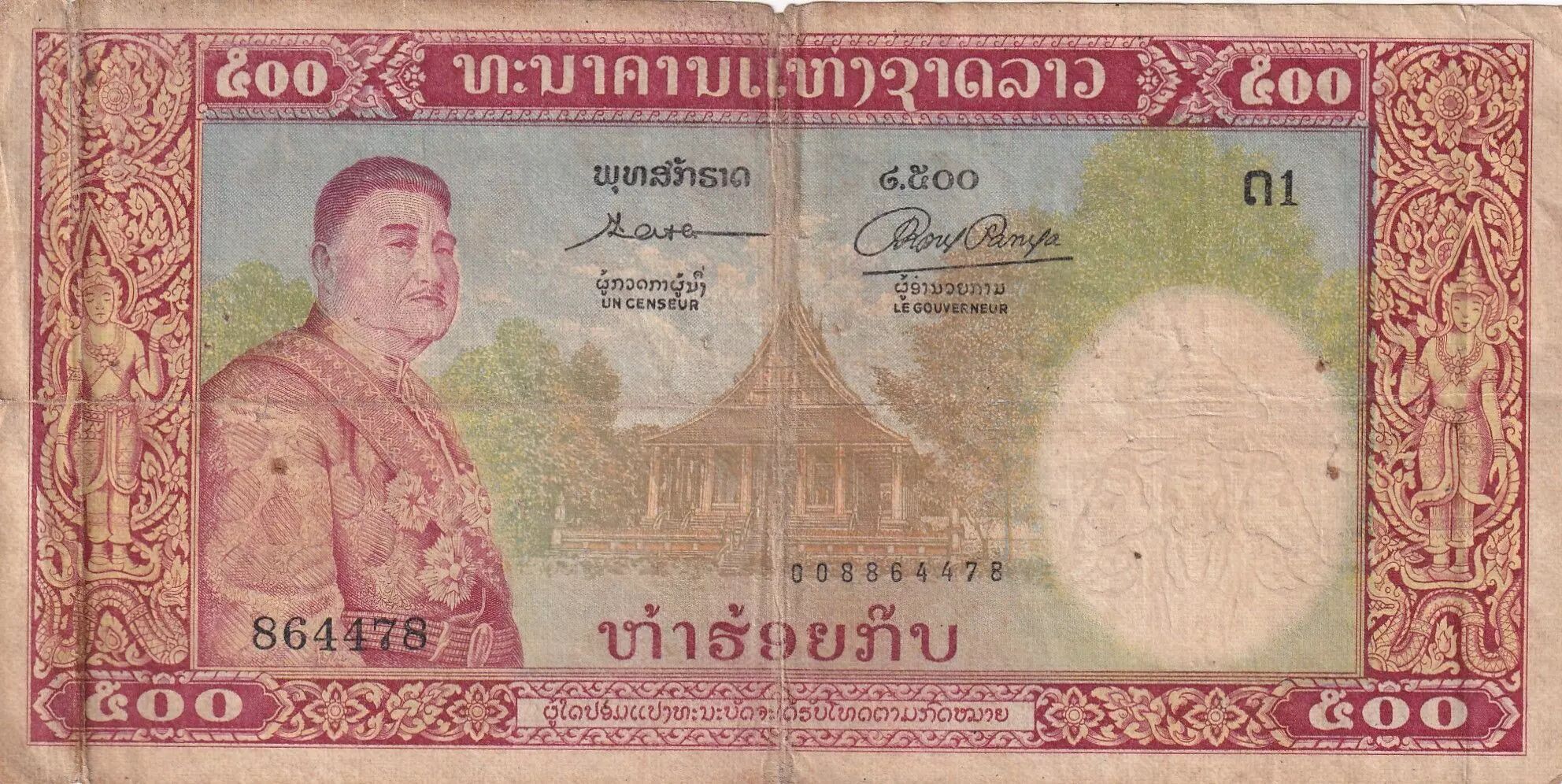 Home > > Lao 500 Kip Gal S. Vong -2500 years of Buddhisme era - 1957