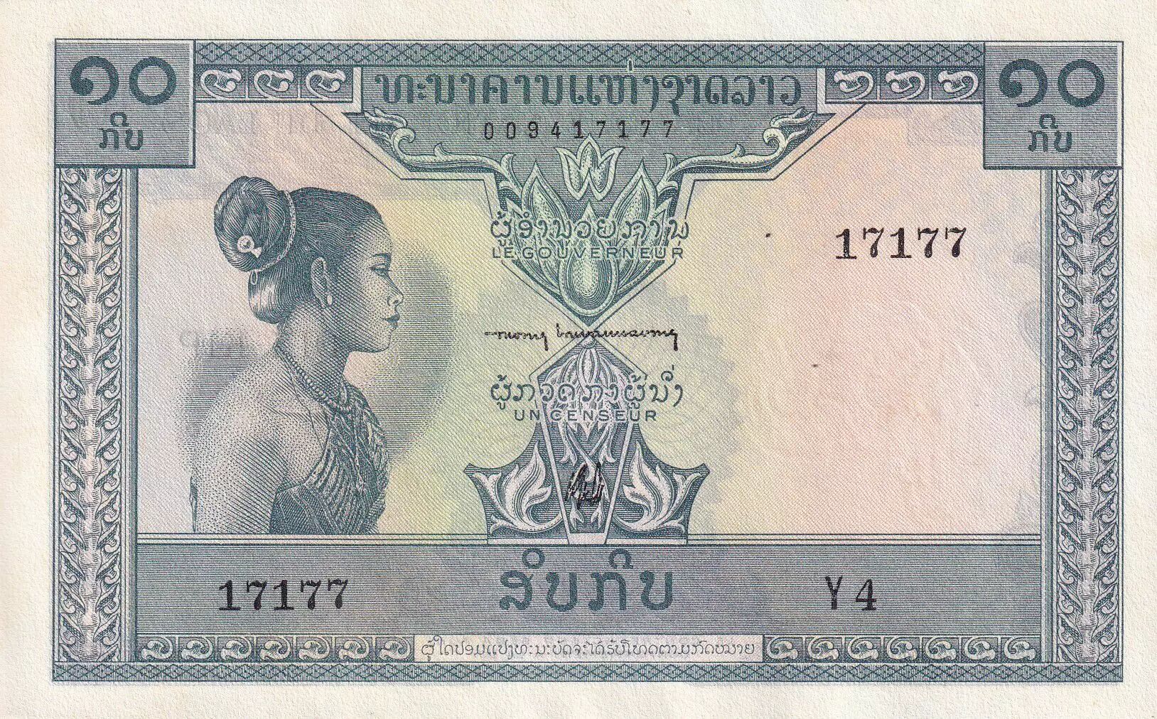 Accueil > Archivage > archivage-Billets du Monde > Laos 10 Kip - Laotienne - Figures stylisées - 1962 - Série Y.4 - NEUF - P.10b