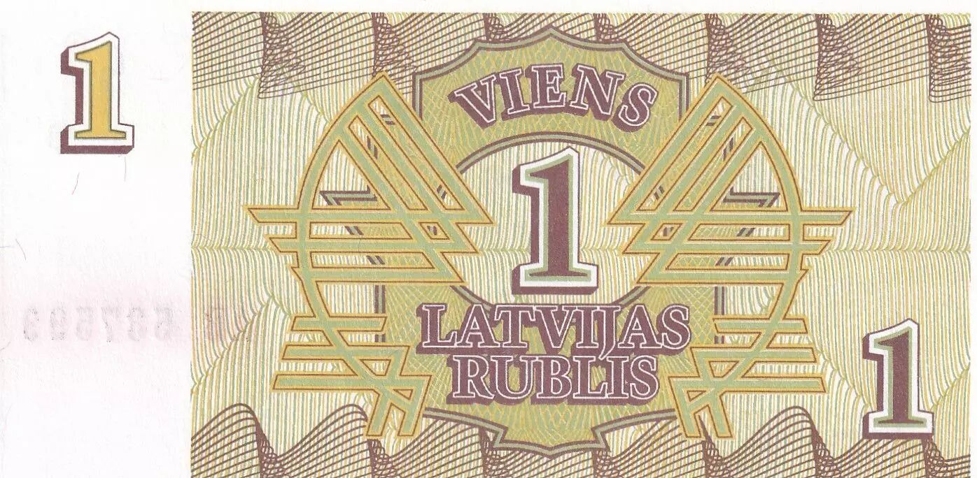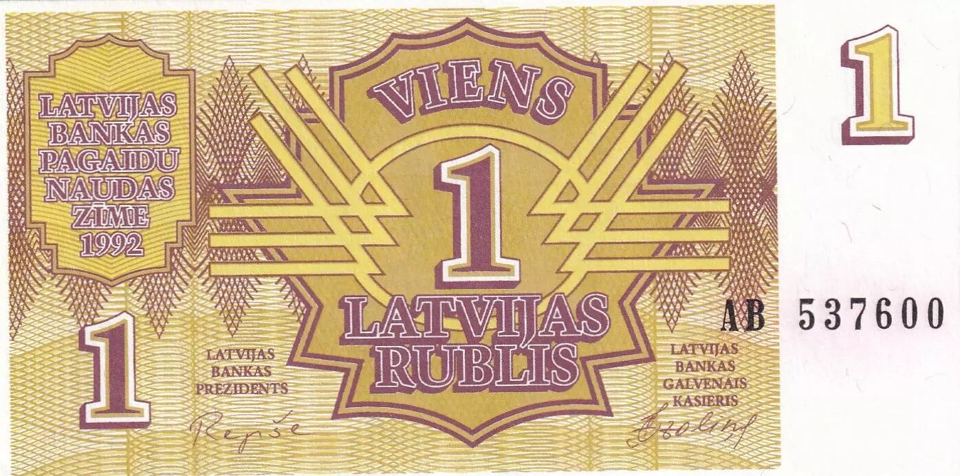 Banknote Latvia 1 rouble - Symmetrical design - 1992 - Serial AB