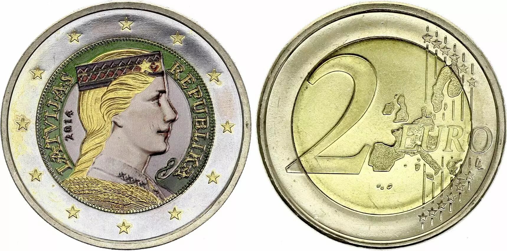 Home > > Latvia 2 Euros - Latvian woman - Colorised - 2014