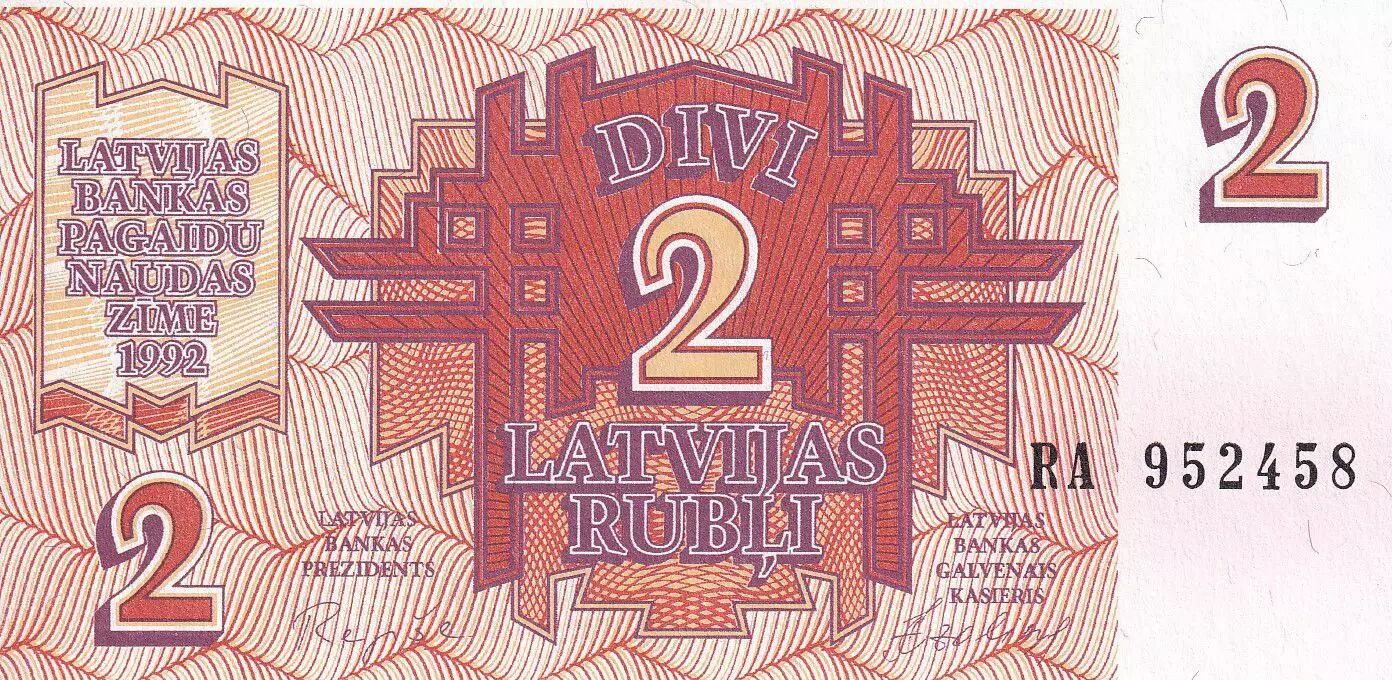 Banknote Latvia 2 Rublei - 1992 - Serial RA -P.36