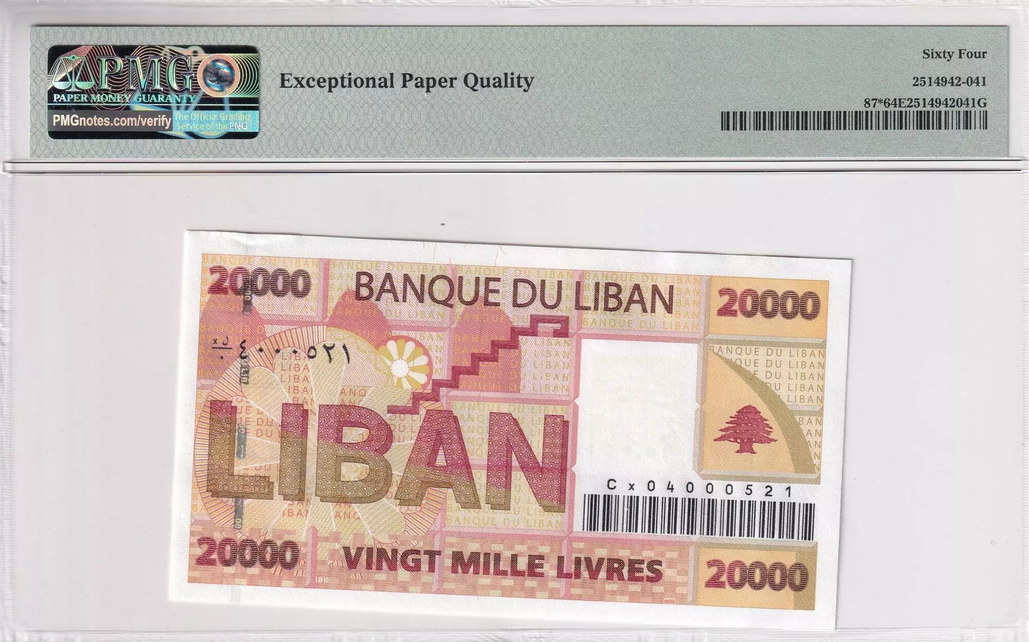 Banknote Lebanon 20000 Livres - Cedar - Replacement - PMG 64 EPQ