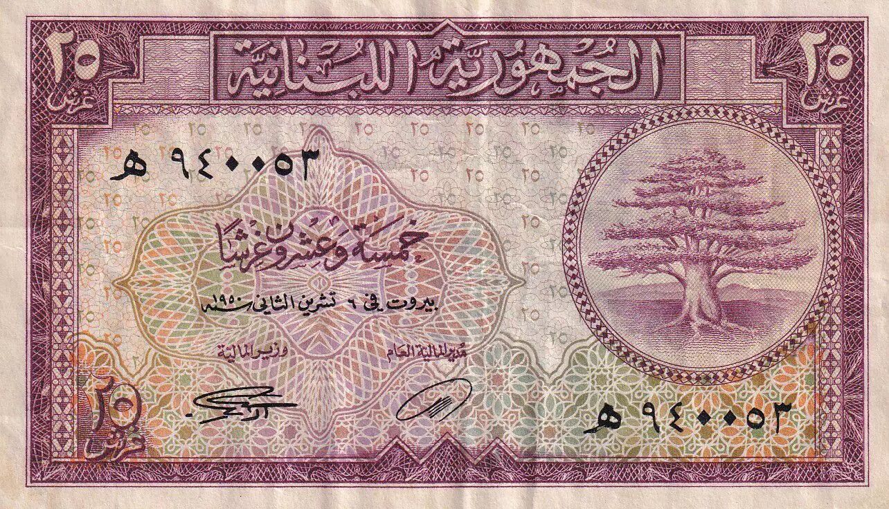 Banknote Lebanon 25 Piastres - Cedar - Lion - 1948 - P.42