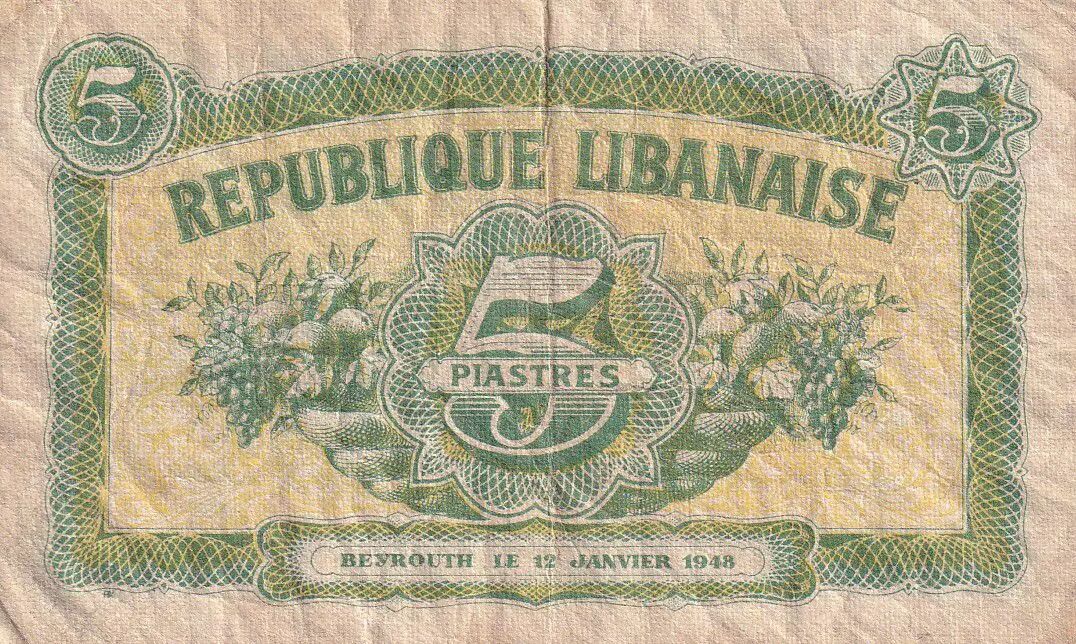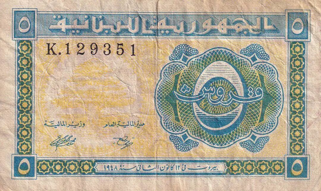 Home > > Lebanon 5 Piastres - Blue & Yellow - 1948 - F - P.40