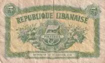 Banknote Lebanon 5 Piastres - Blue & Yellow - 1948 - F - P.40