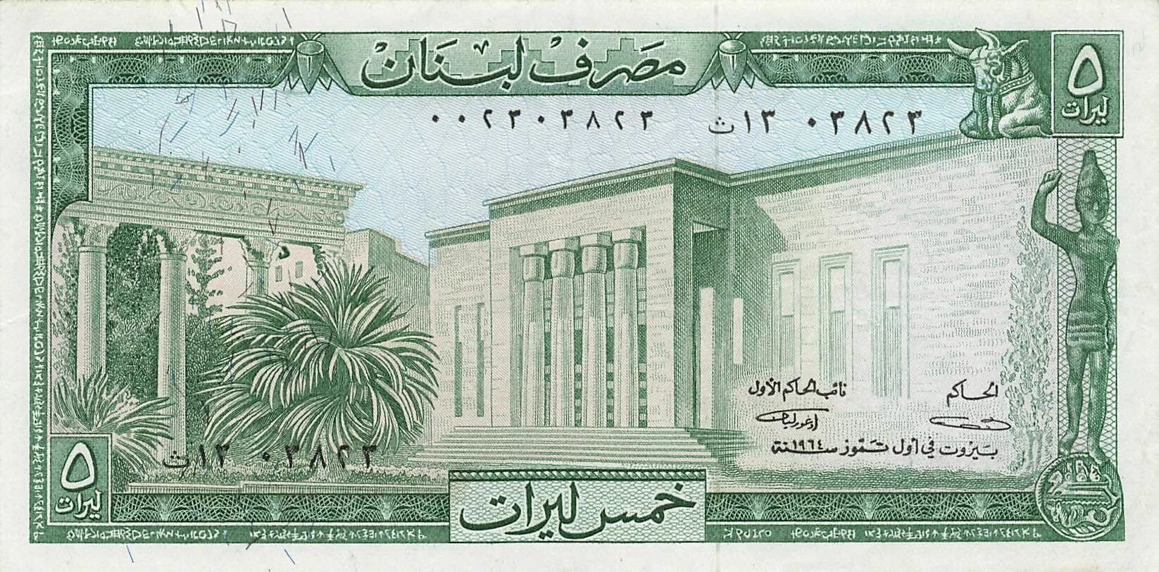 Home > World Banknotes > Asian Banknotes > Lebanon > Lebanon 5 Pounds - 1964 - P.62a