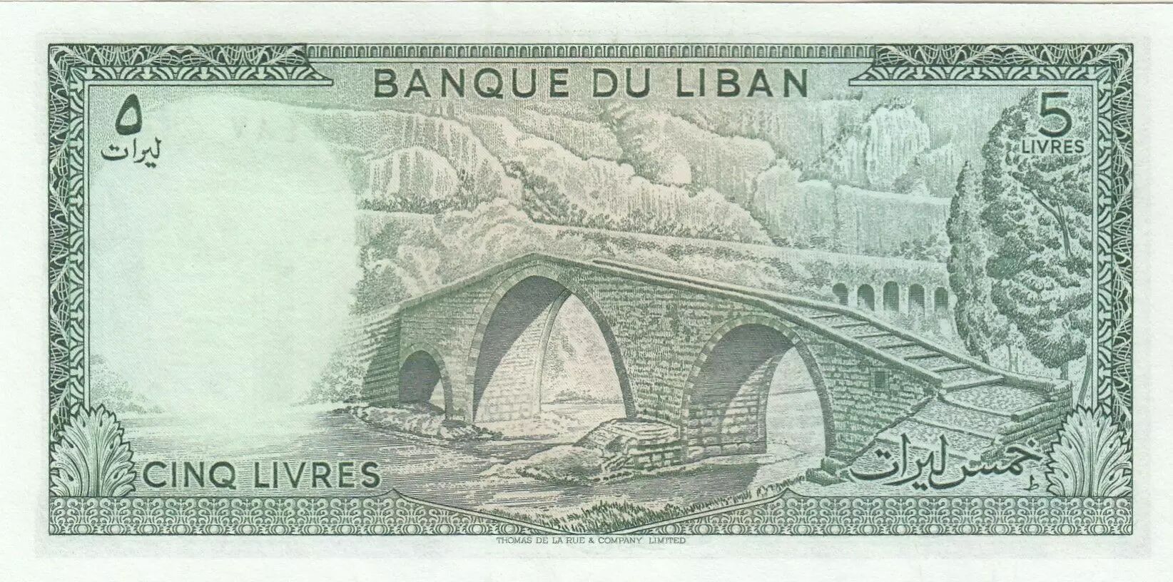 This banknote, with a face value of 5 Lebanese pounds, was issued in 1986. Its dimensions are 140 millimeters in length and 70 millimeters in width.