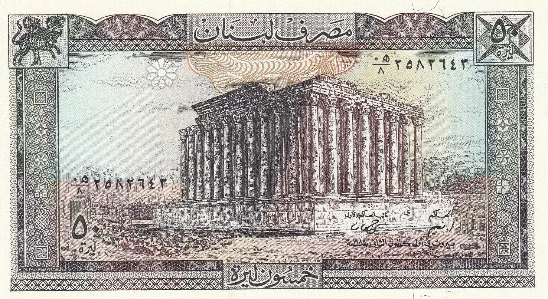 Home > > Lebanon 50 Pounds Temple of Bacchus - 1988