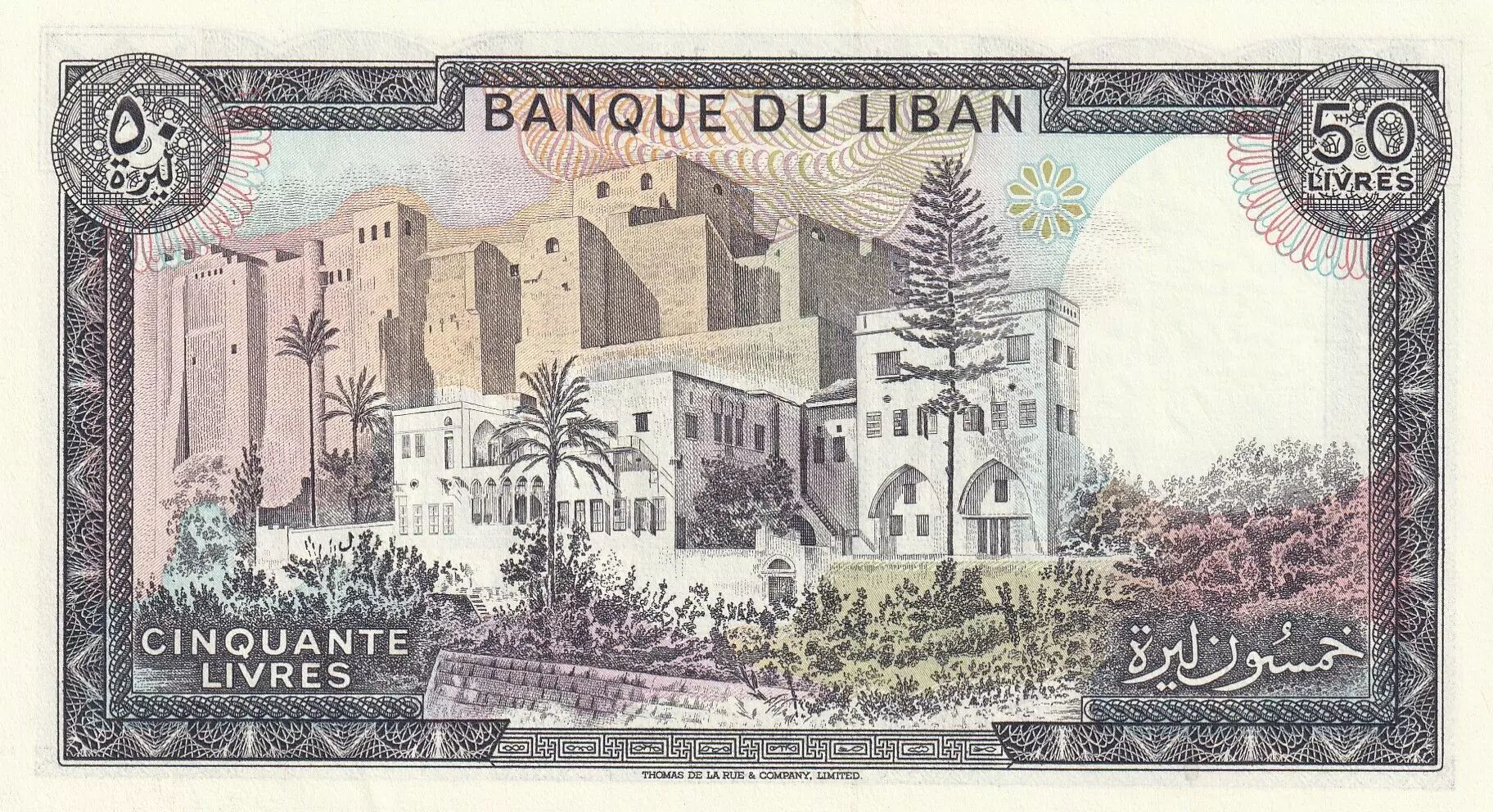 Banknote Lebanon 50 Pounds Temple of Bacchus - 1988