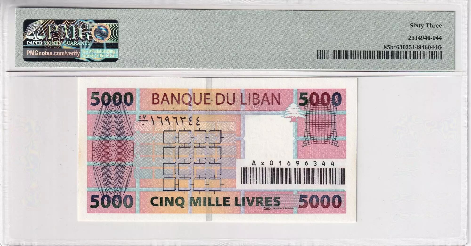 Banknote Lebanon 5000 Livres - Rose - Remplacement - PMG 63