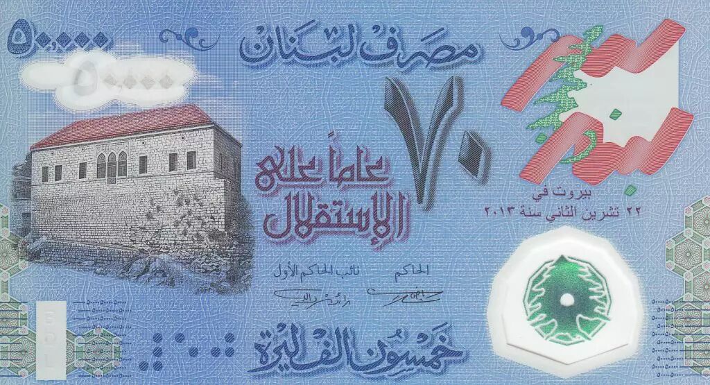 Banknote Lebanon 50000 Pounds, 70 years of Independence of Lebanon - 2013 Polymer
