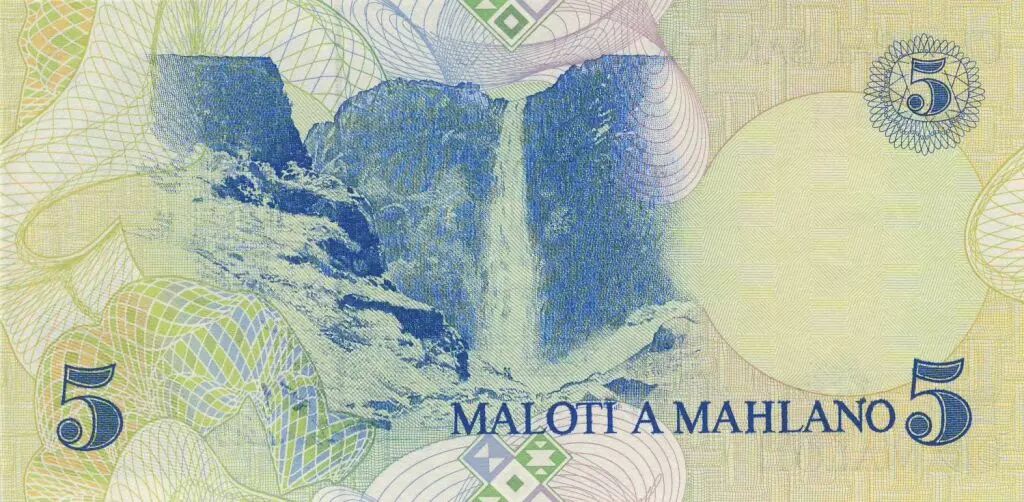 Banknote Lesotho 5 Maloti King Moshoeshoe II - Waterfalls - 1989