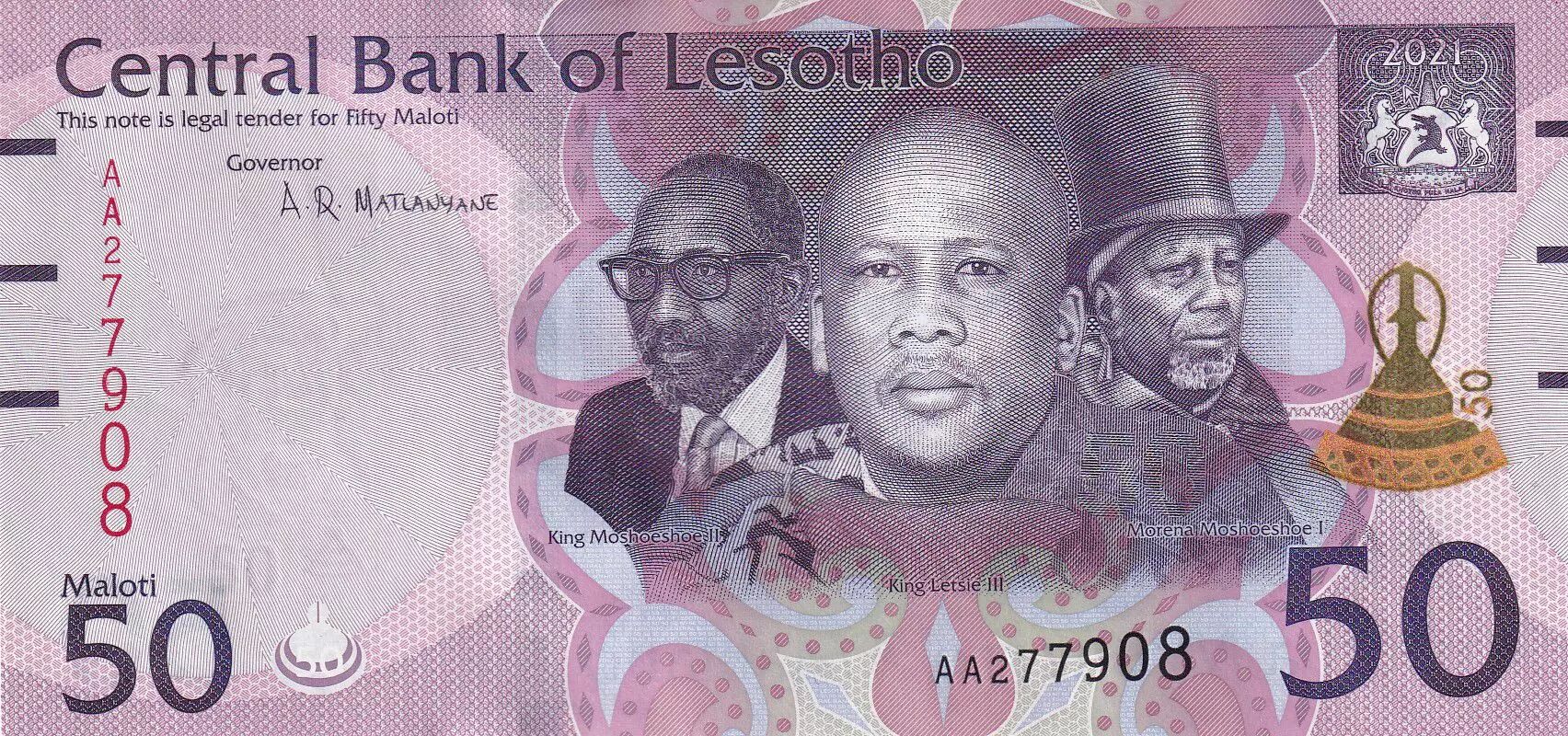 Home > World Banknotes > African Banknotes > Lesotho > Lesotho 50 Maloti - Kings - Horses - 2021 - P.NEW