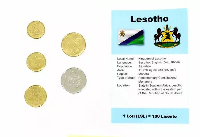 Pièce Lesotho Blister 5 monnaies LESOTHO (5 lisente à 1 loti)