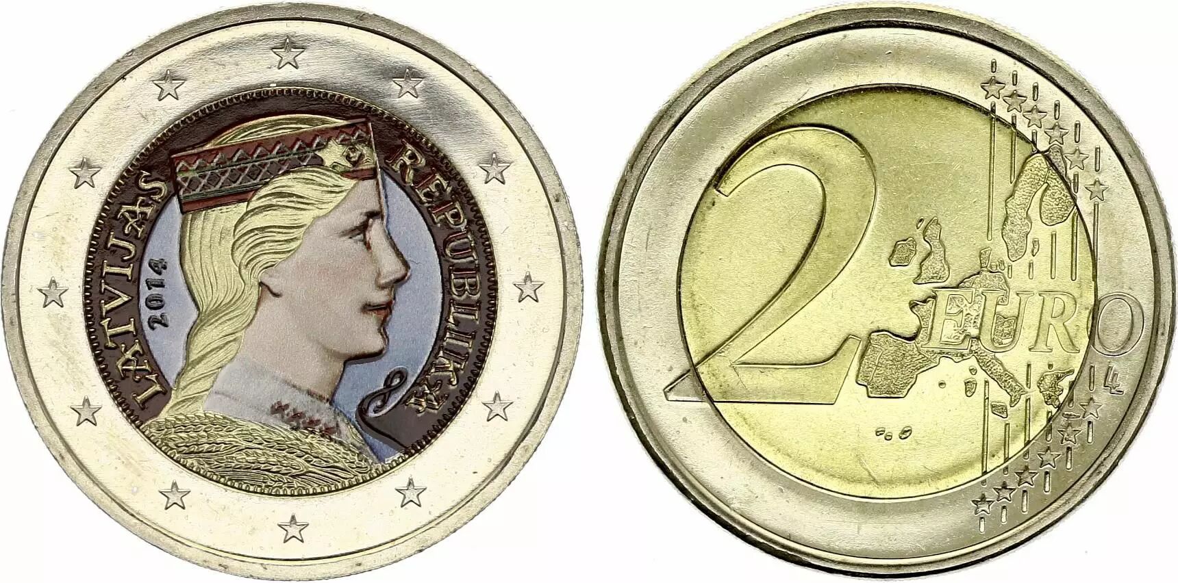 Accueil > > Lettonie 2 Euros - Femme lettone - Colorisée - 2014