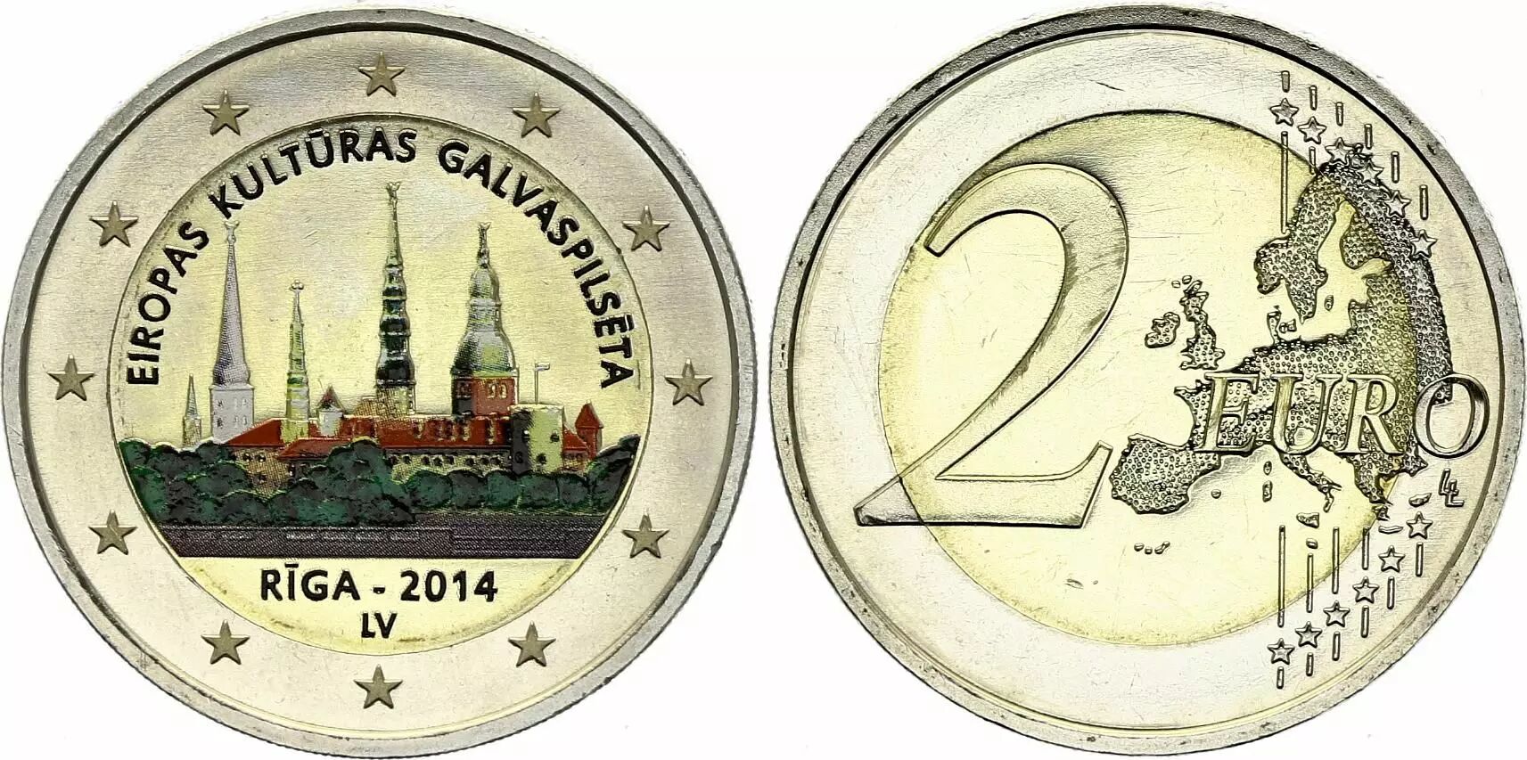 Pièce Lettonie 2 Euros - Riga capitalie européenne de la culture - Colorisée - 2014