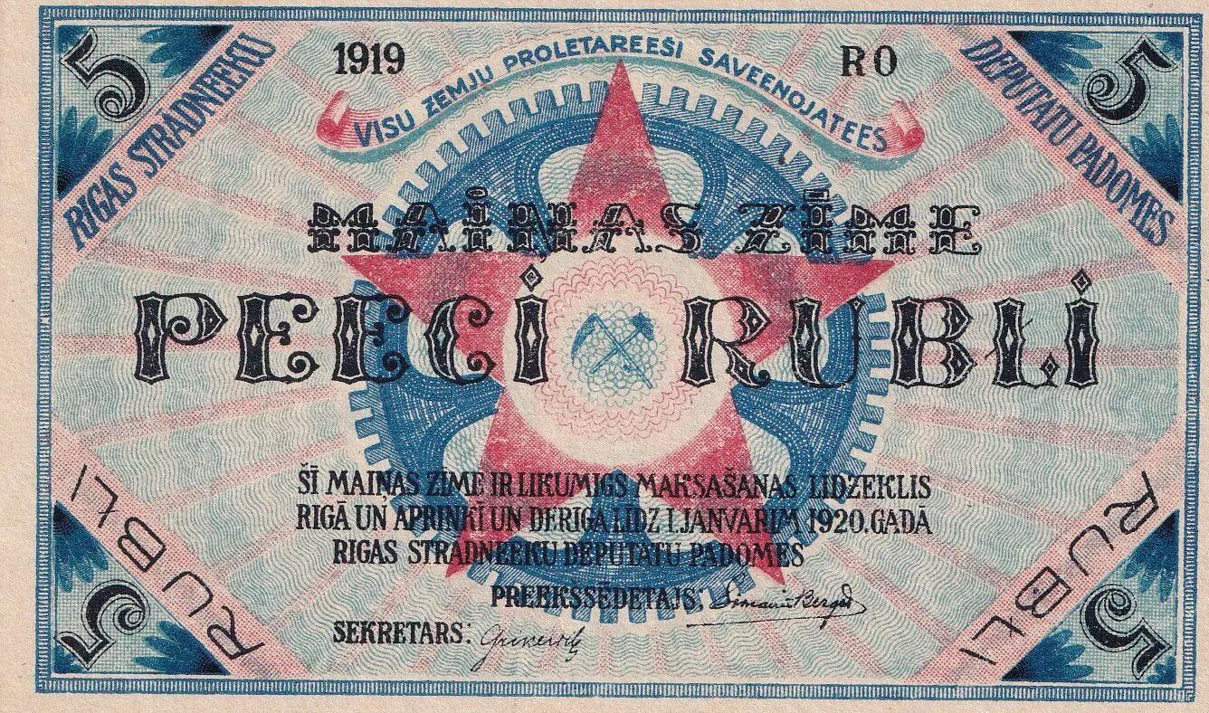 Accueil > Billets du Monde > Billets d'Europe > Lettonie > Lettonie 5 Rubli - Etoile - 1919 - P.R3