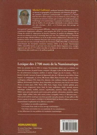 Lexique Numismatique, M. Galléazzi. 2700 mots de la numismatique expliqués. 125 pages couleurs. Editions Numismatique et Change.