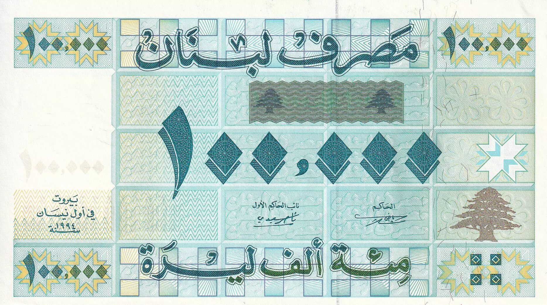 Billet Liban 100000 Livre - Motifs géométriques - 1994 - Série E - P.74