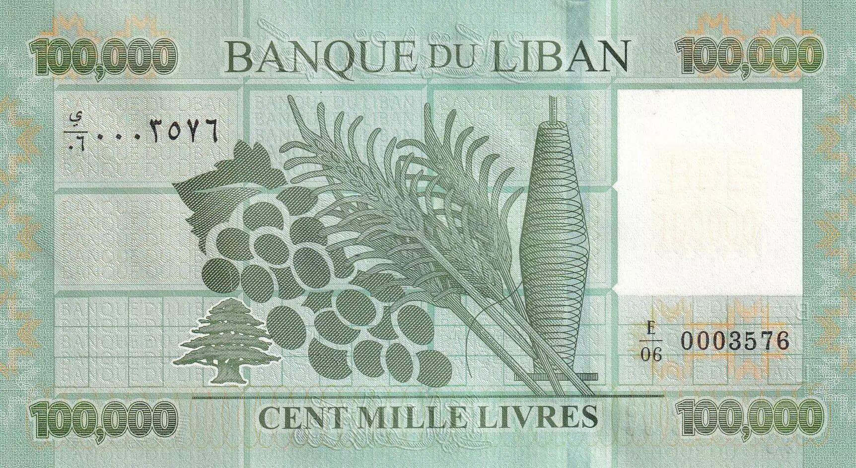 Billet Liban 100000 Livres - Motifs géométriques - Fruits - 2012 - Série E.06 - P.95b