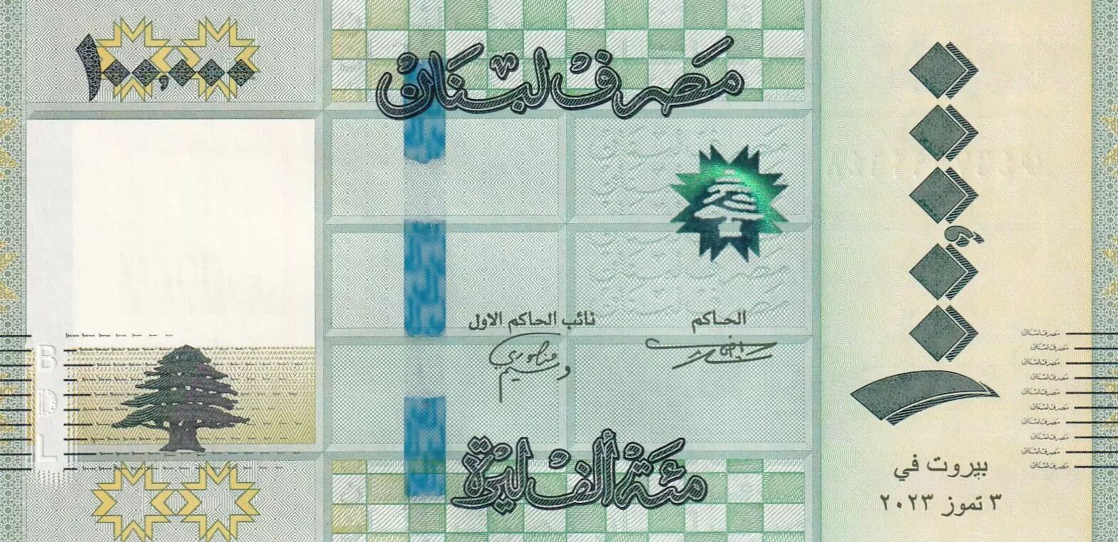 Billet Liban 100000 Livres - Motifs géométriques - Fruits - 2023 - Série E