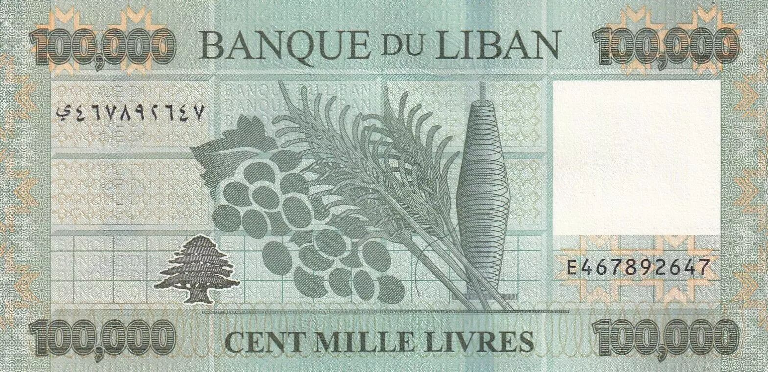 Accueil > Billets du Monde > Billets d'Asie > Liban > Liban 100000 Livres - Motifs géométriques - Fruits - 2023 - Série E