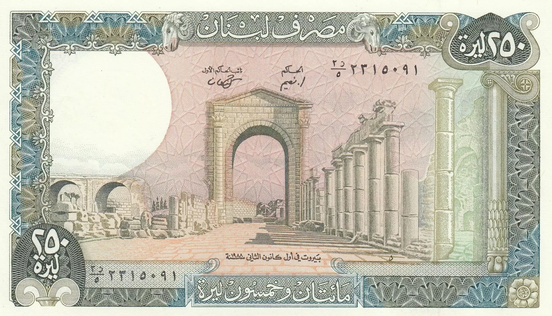 Billet Liban 250 Livres Ruines de Tyras - 1988
