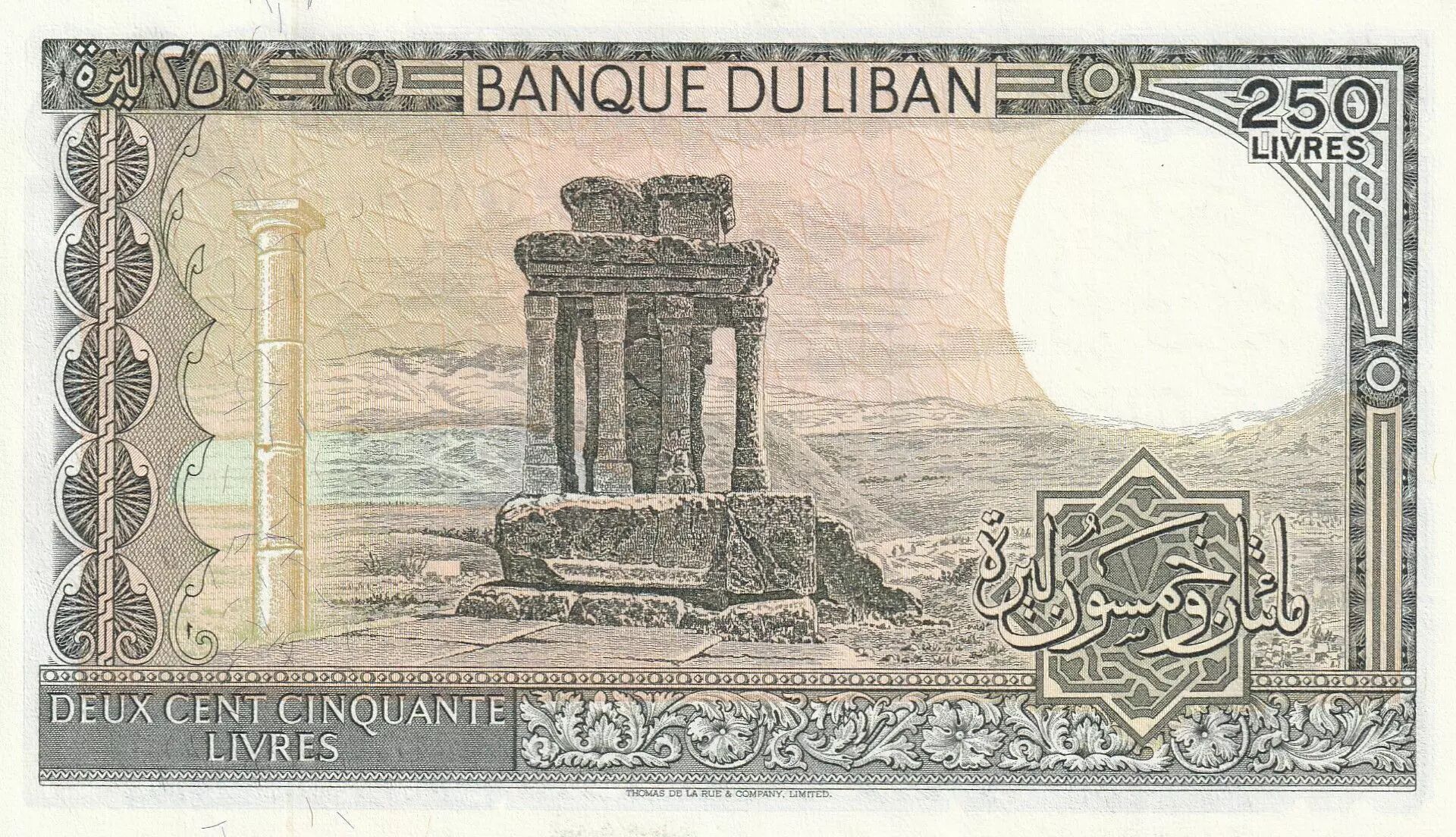 Billet Liban 250 Livres Ruines de Tyras - 1988