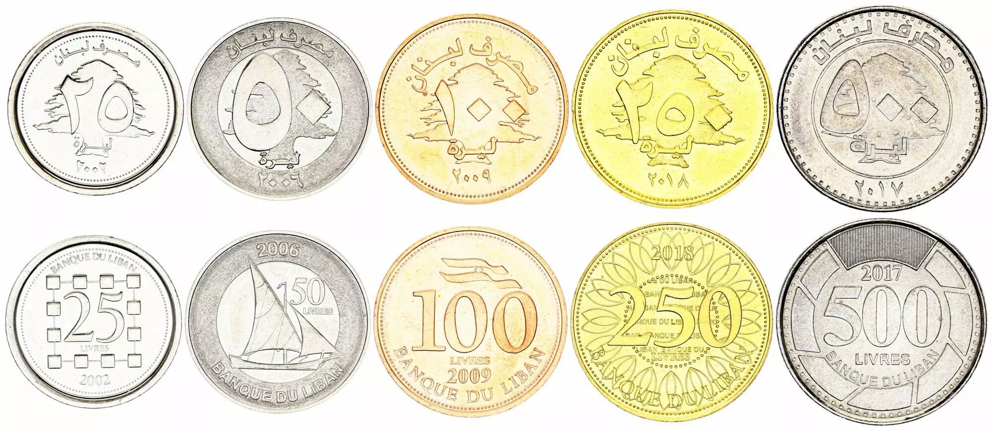 25,50,100,250 et 500 Livres - Série de 5 Monnaies -2002-2018 - SPL