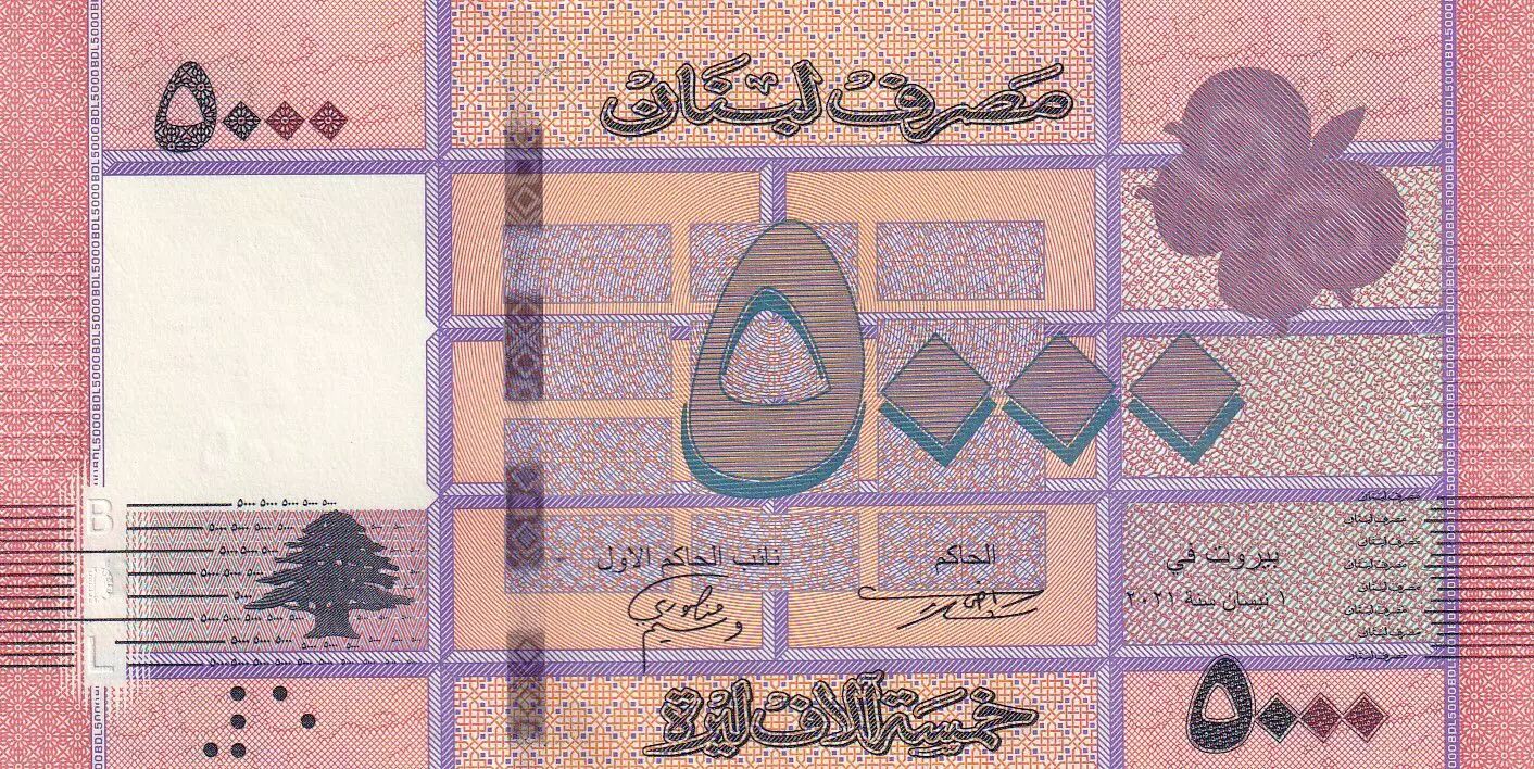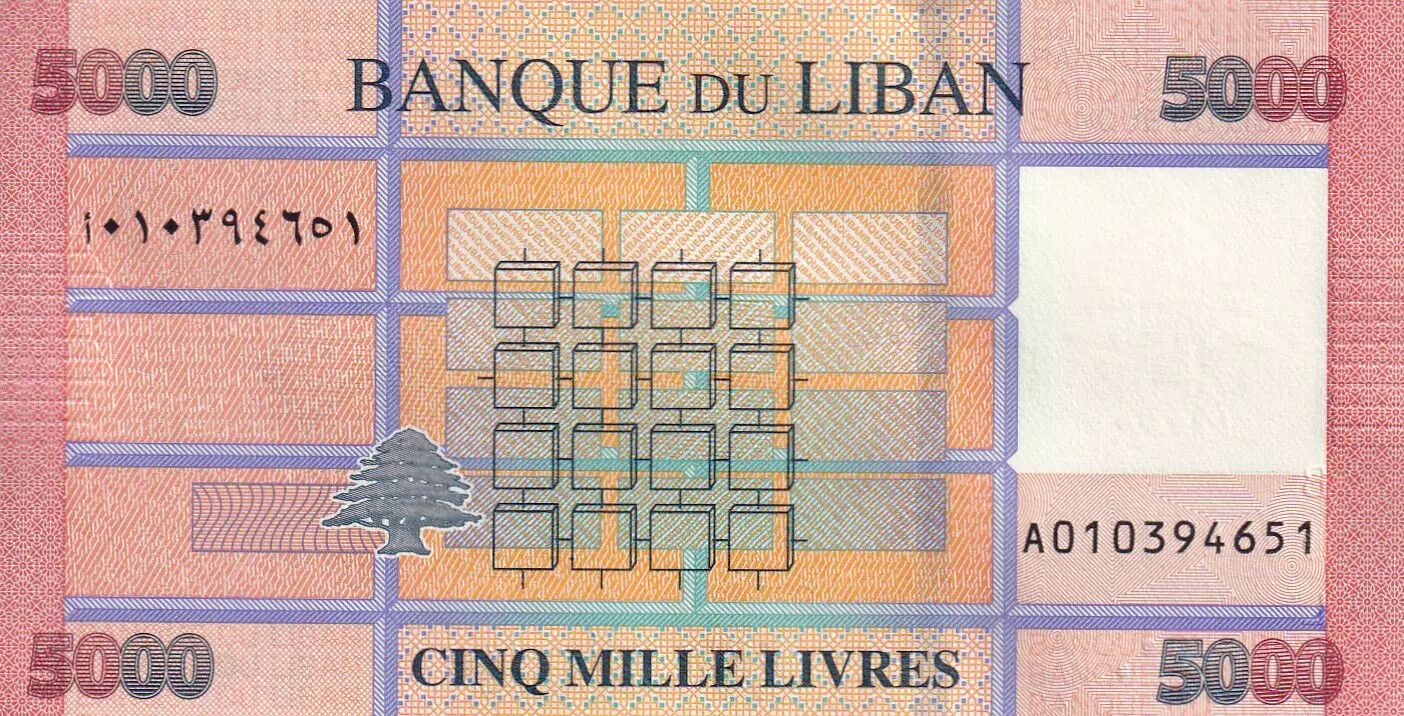 Billet Liban 5000 Livres - Motifs géométriques - Arbre - 2021 - P.NEW