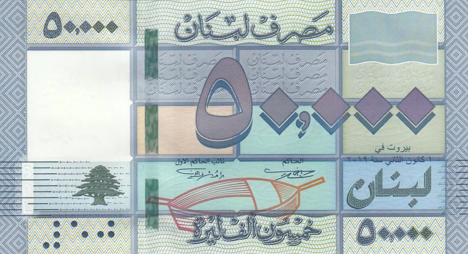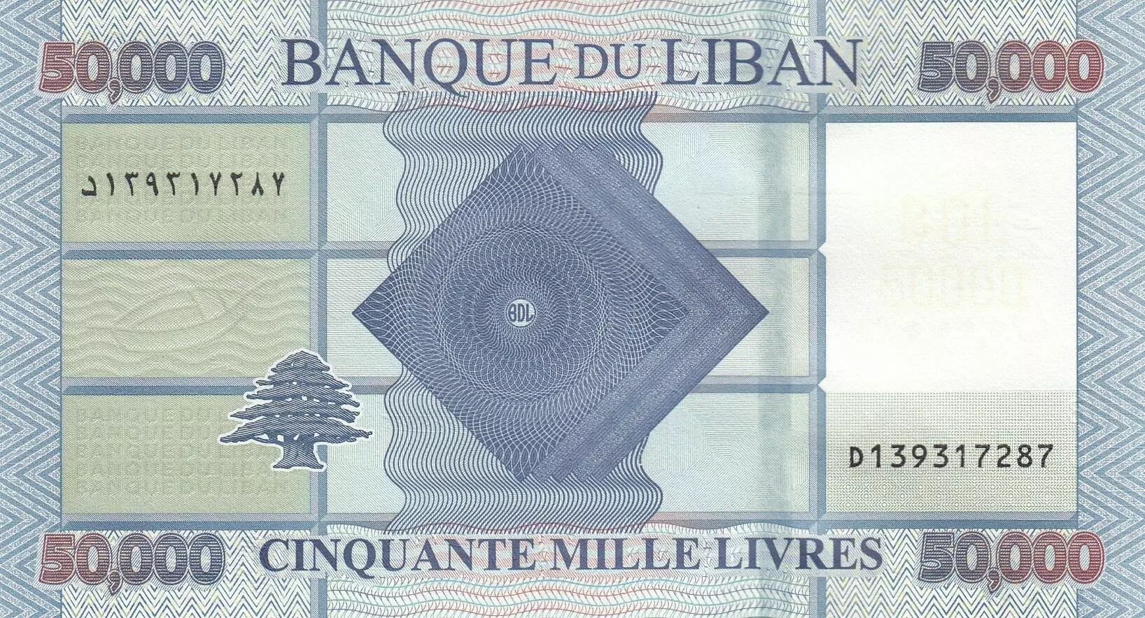 Accueil > Billets du Monde > Billets d'Asie > Liban > Liban 50000 Livre - Motifs géométriques - 2019 - Série D
