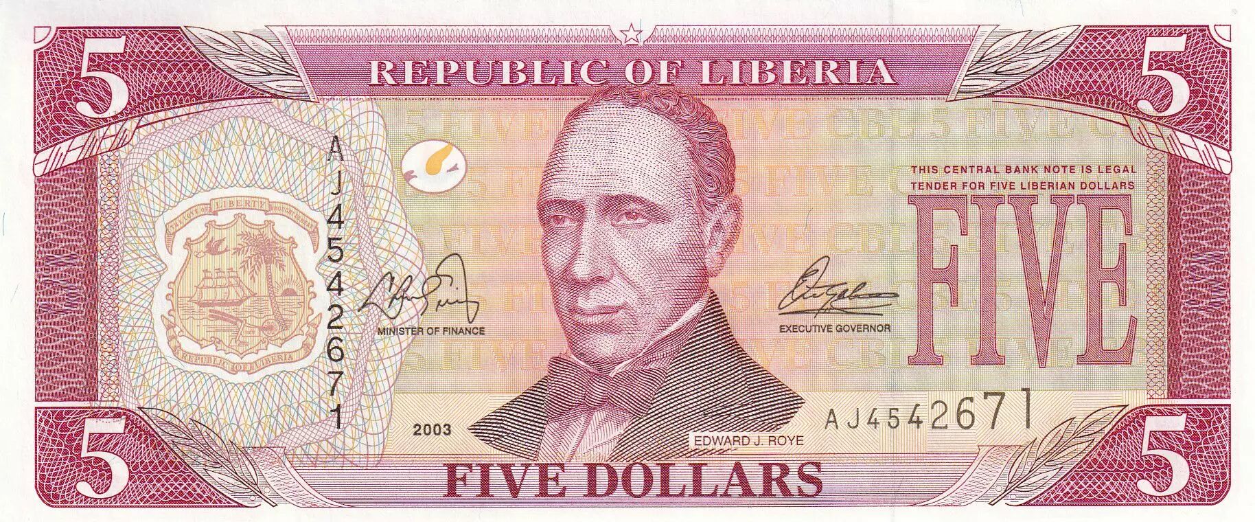 Home > > Liberia 5 Dollars - Edward J. Roye - 2003 - Serial AJ - P.26a