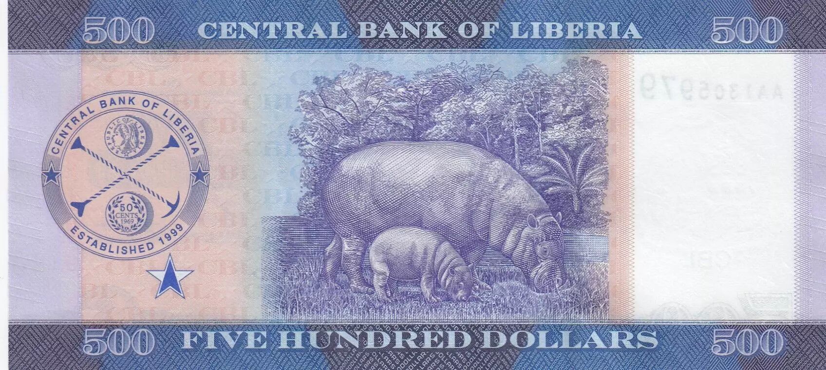 Accueil > Billets du Monde > Billets d'Afrique > Liberia > Liberia 500 Dollars - Créateurs du drapeau libérien - Hippopotames - 2022