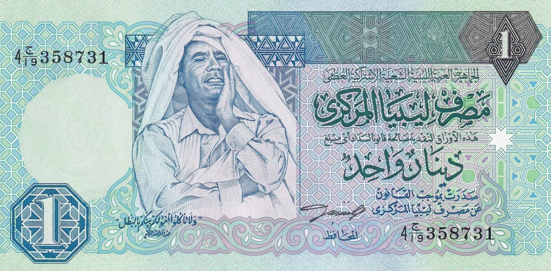 Banknote Libya 1 Dinar - Muammar Gaddafi - Mosque - ND (1993) - P.59a