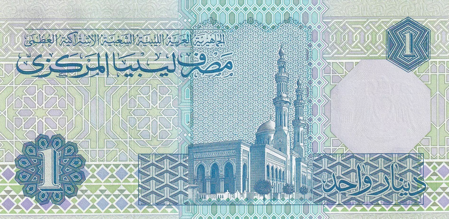 Home > > Libya 1 Dinar - Muammar Gaddafi - Mosque - ND (1993) - P.59a