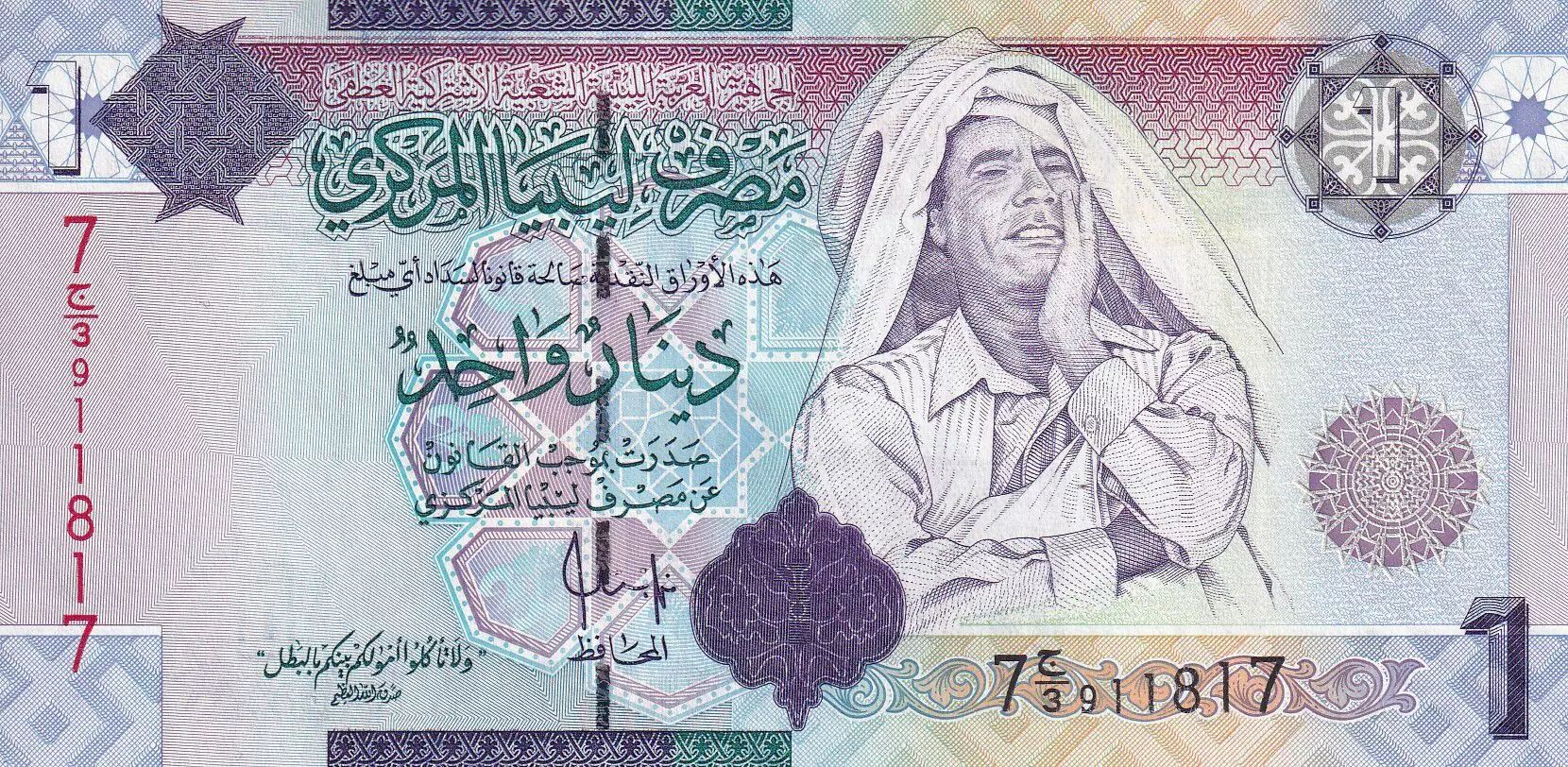 Banknote Libya 1 Dinar - Muammar Gaddafi - Mosque - ND (2004) - P.68b