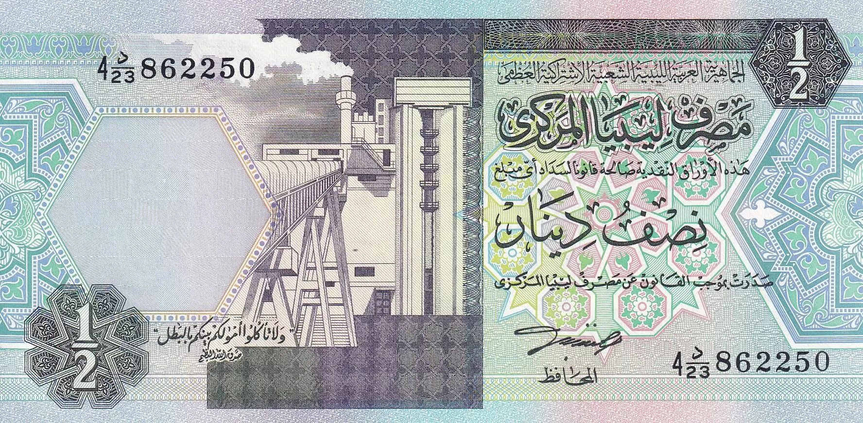 Home > World Banknotes > African Banknotes > Libya > Libya 1/2 Dinar - Oil refinery - ND (1991) - P.58b