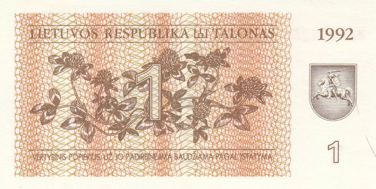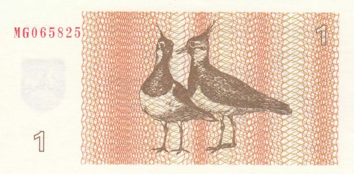 Banknote Lithuania 1 Talonu - Birds - 1992 - Serial MG