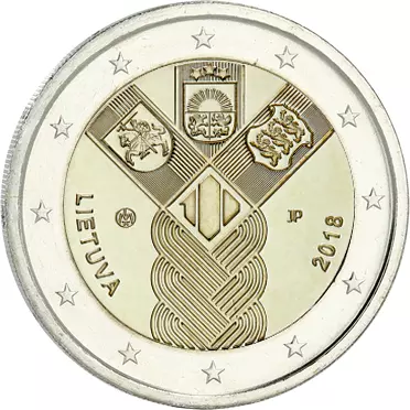 The central banks of the three Baltic countries - Latvijas Banka Lietuvos bankas and Eesti Pank - are issuing a commemorative 2-euro coin with the same design in 2018. The coin is intended to be a symbol of the determination of the Baltic nations to defend their independence. It also aims to show the unity of Latvia, Lithuania and Estonia and their willingness to cooperate for their independence and freedom.