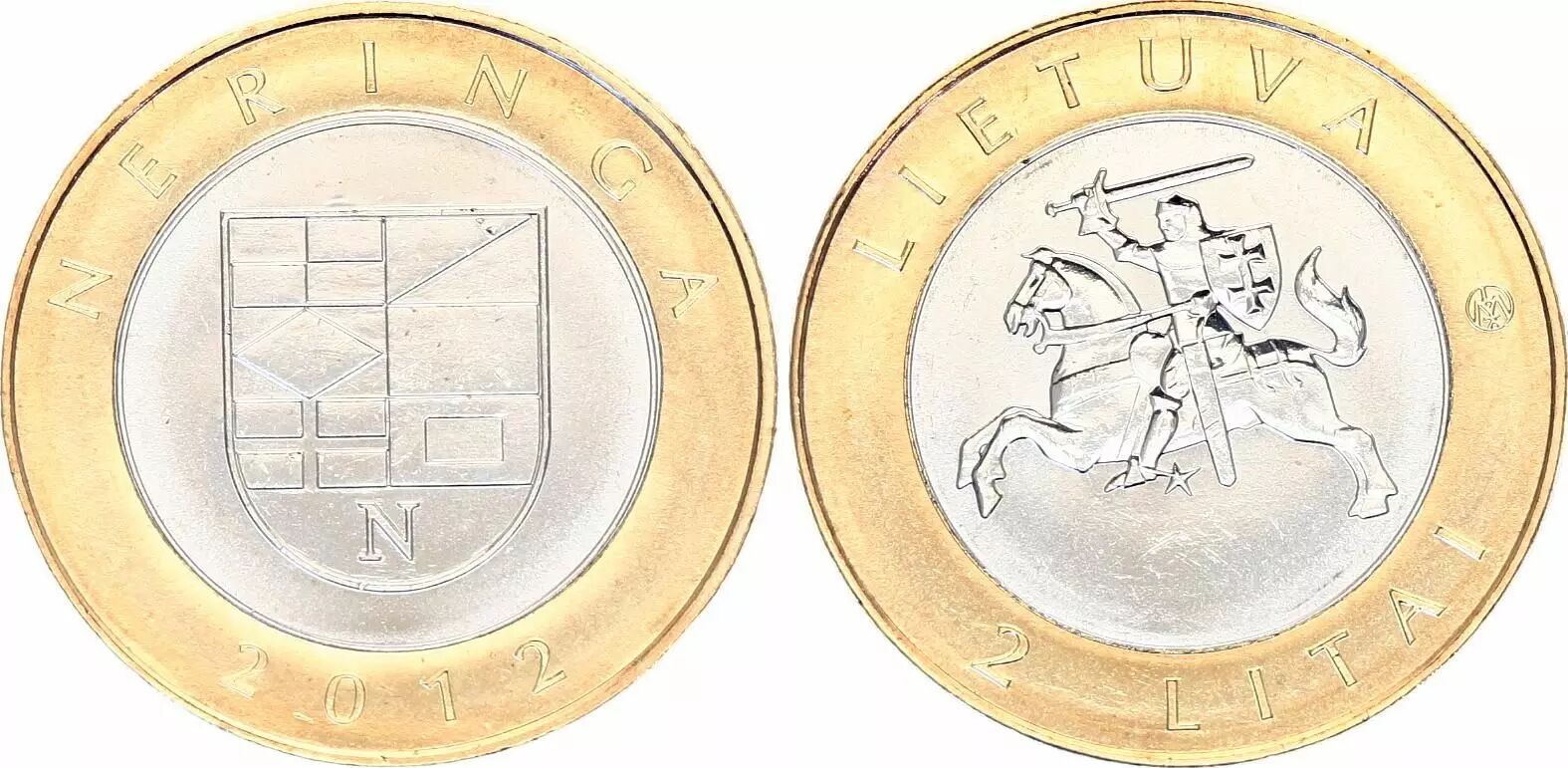 The commemorative 2 litas coin of Lithuania, issued in 2012, pays tribute to Neringa. This bimetallic coin weighs 7.5 grams and has a diameter of 25 millimeters.