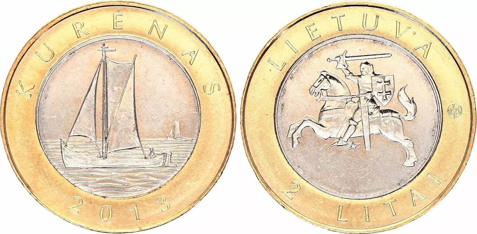 This 2 litas commemorative coin, issued by Lithuania in 2013, pays tribute to the Kurenkahn. The coin is bimetallic, featuring a combination of metals that creates a distinct visual contrast. It weighs 7.5 grams and has a diameter of 25 millimeters.
