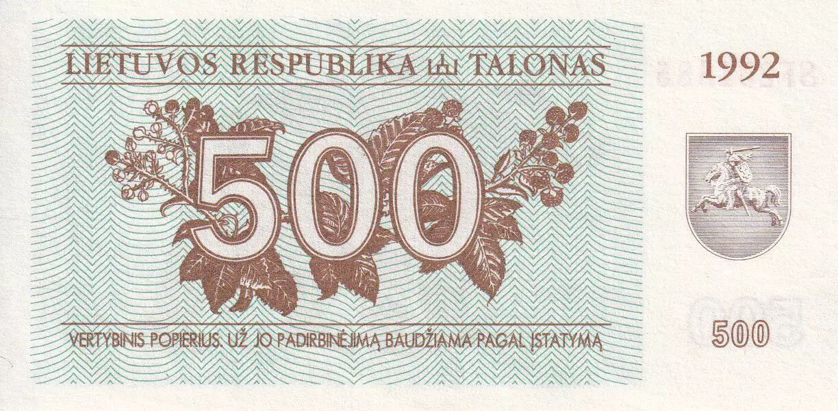 Banknote Lithuania 500 Talonu - Bear - 1992 - P.44