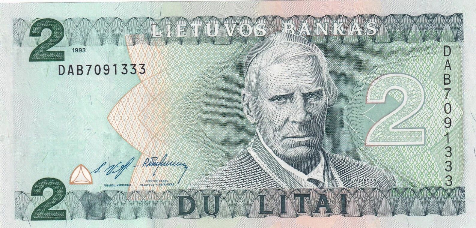 Ce billet de banque de Lituanie, d'une valeur nominale de 2 litai, a été émis en 1993. Il fait partie de la série DA.