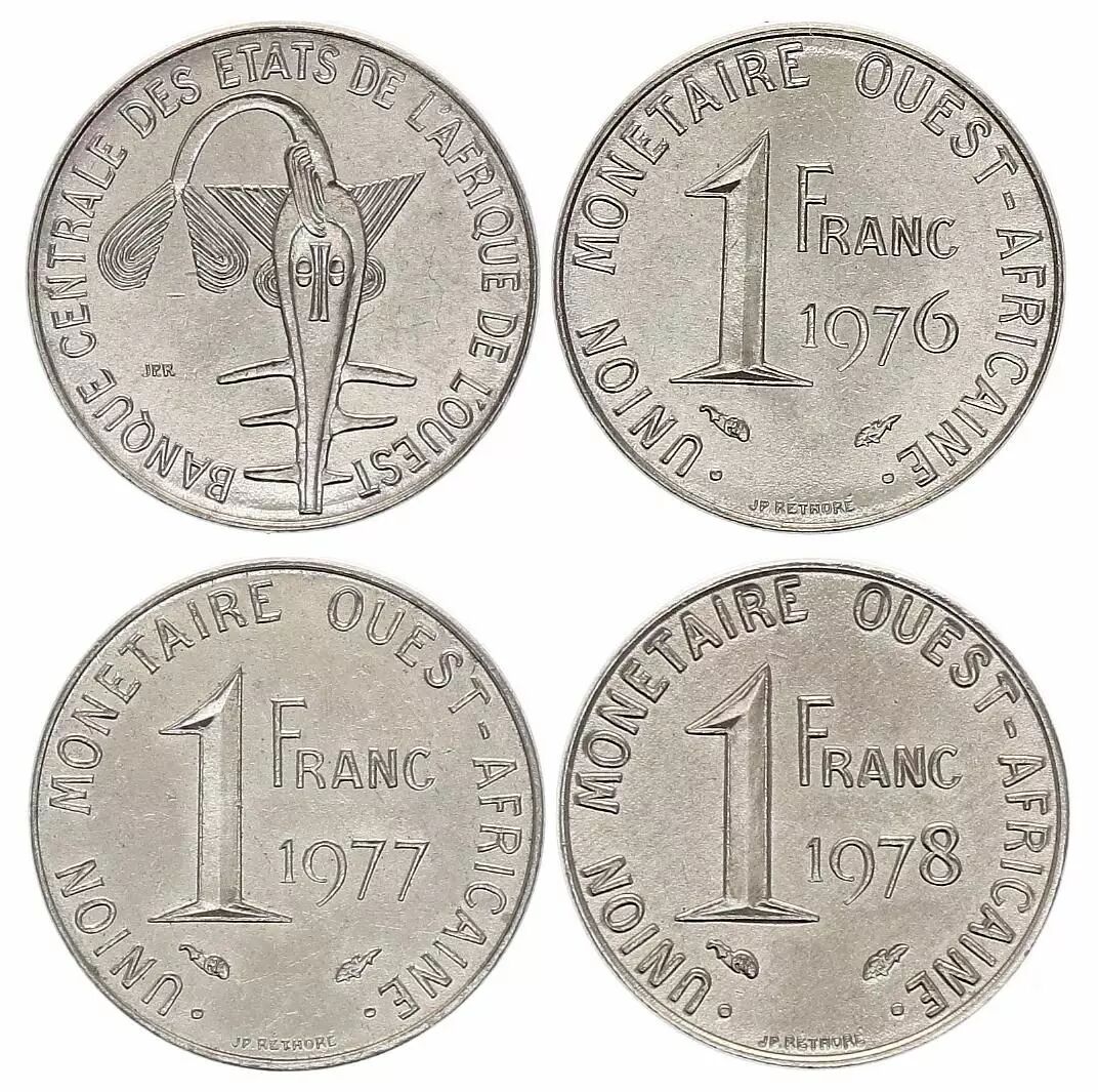 from rolls. Incluing 3 coins of 1 Franc 1976 - 1977 - 1978