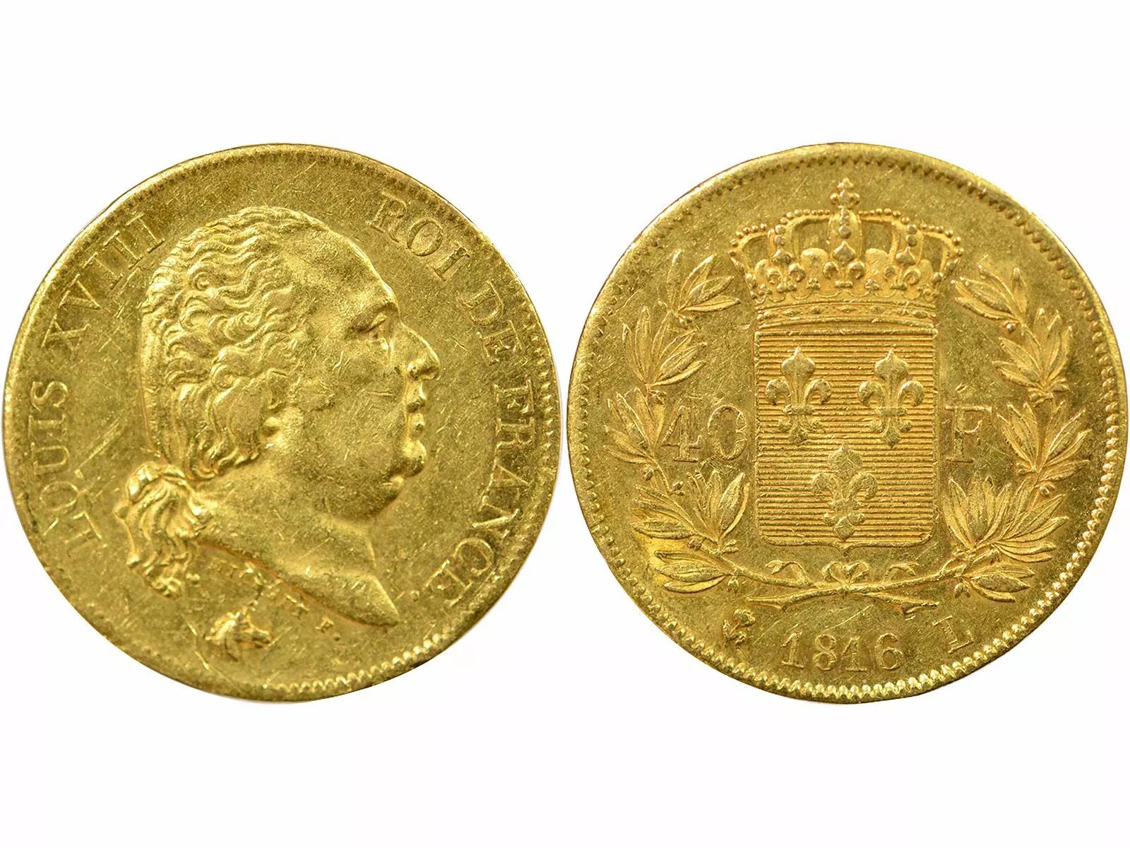 Coin Louis XVIII? - 40 Francs Or, Bare Head - 1816 L Bayonne