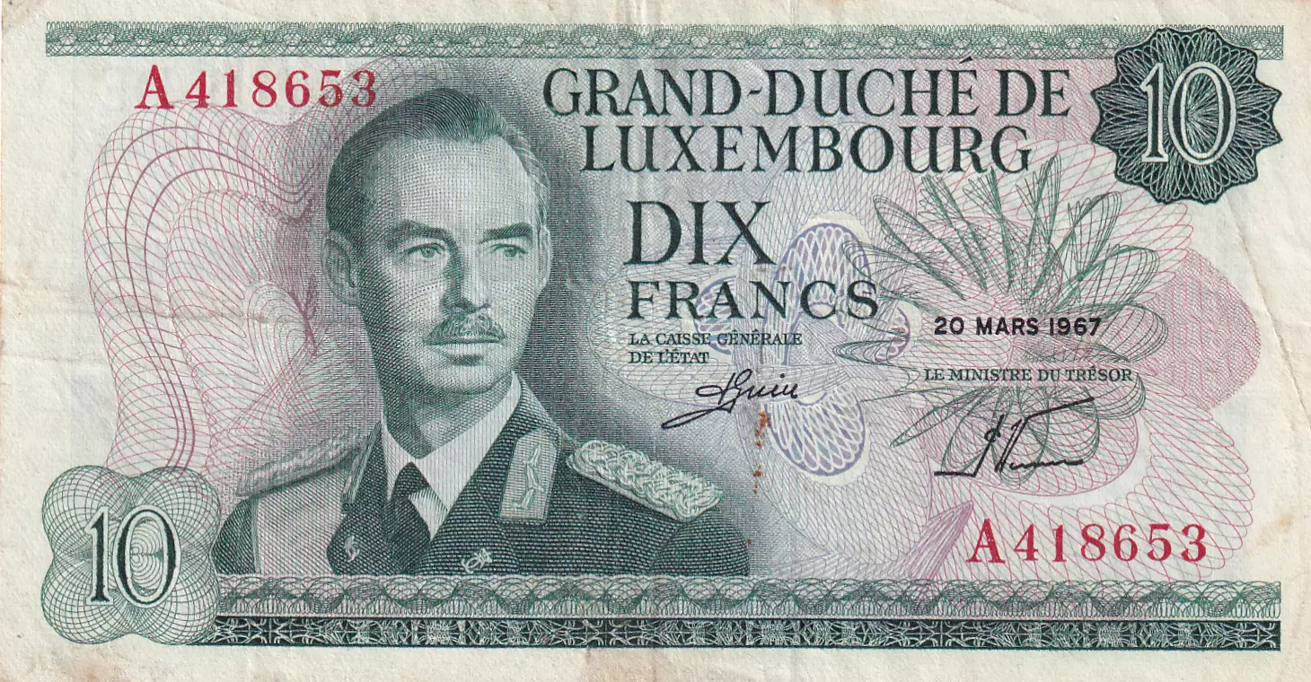 Accueil > Archivage > Luxembourg 10 Francs Grand Duc Jean - Pont - 20-03-1967 - Lettre A