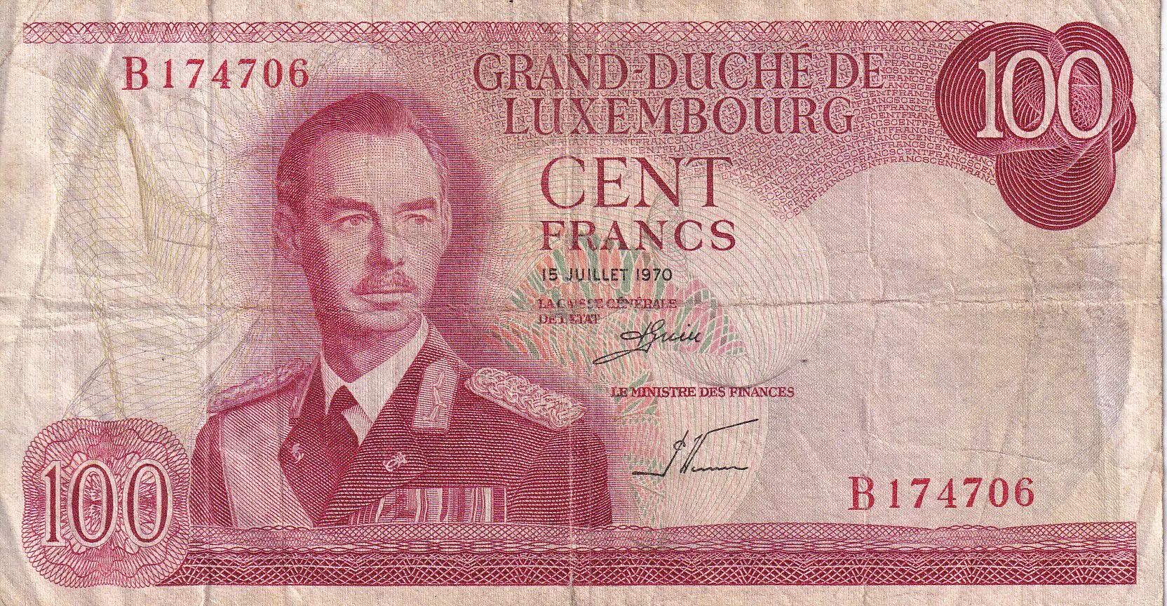 Accueil > Archivage > Luxembourg 100 Francs - Grand Duc Jean - 1970 - Lettre B - TB - P.56